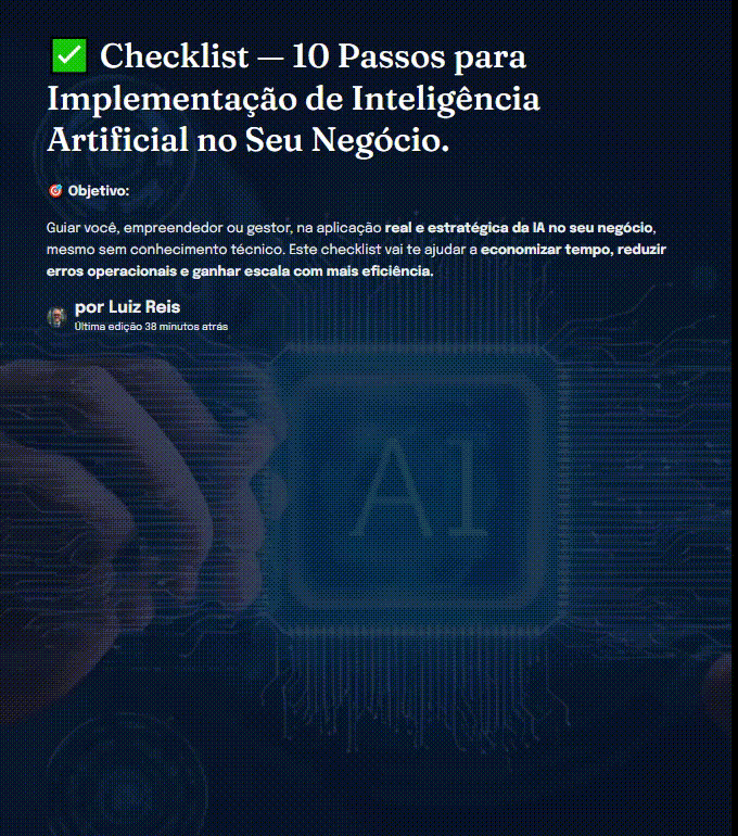 "Mas esse checklist me mostrou que, mesmo no meu pequeno negócio, dá pra automatizar muita coisa com ferramentas gratuitas. Já estou usando IA para responder clientes e criar conteúdo — e estou economizando quase 4 horas por semana!”
